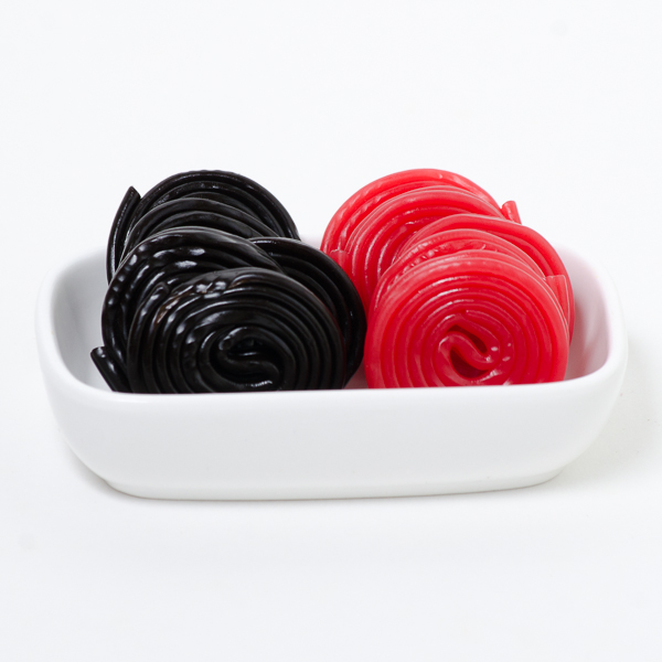 Our imported licorice wheels are gift boxed and available in red or black.